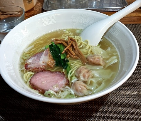 らーめん穀雨 @渋谷 ワンタン麺3個塩 炙りチャーシュー丼