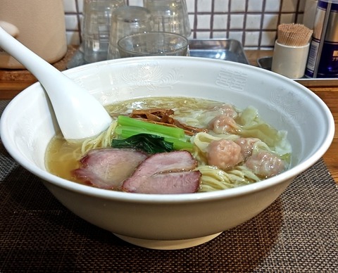 らーめん穀雨 @渋谷 ワンタン麺5個塩 炙りチャーシュー丼