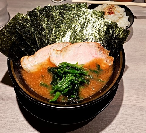 横浜家系ラーメン てつ家 @市ヶ谷 ラーメン海苔 半ライス