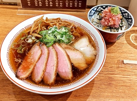 超多加水自家製手揉み麺 きたかた食堂 @神保町 醤油中華そば肉増し トロたくちらし